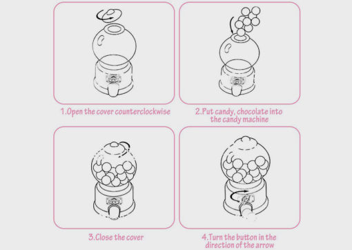 كل اللي عليك انك تفتح الغطا الصغير من فوق و تملاها بالحلويات اللي ولادك بيحبوها، فيها مفتاح علشان تعرف تنزل الحلويات عن طريق لفه زي اتجاه عقارب الساعة و هتلاقي اللبان أو الحلويات نزلت من المخرج اللي تحت.